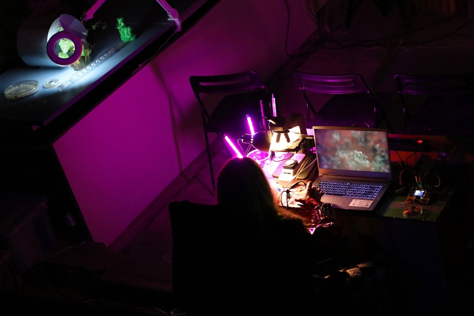 In the BioGlitch installation, a streaming frame will appear on 13 December, broadcasting the performance live from the lab.